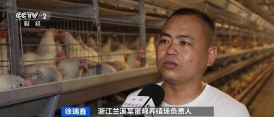 浙江兰溪某蛋鸡养殖场负责人徐瑞鑫:每斤成本在4块2左右,去年只有3块5、3块6,涨了百分之二三十,现在出厂价是五块一左右,还有点利润。