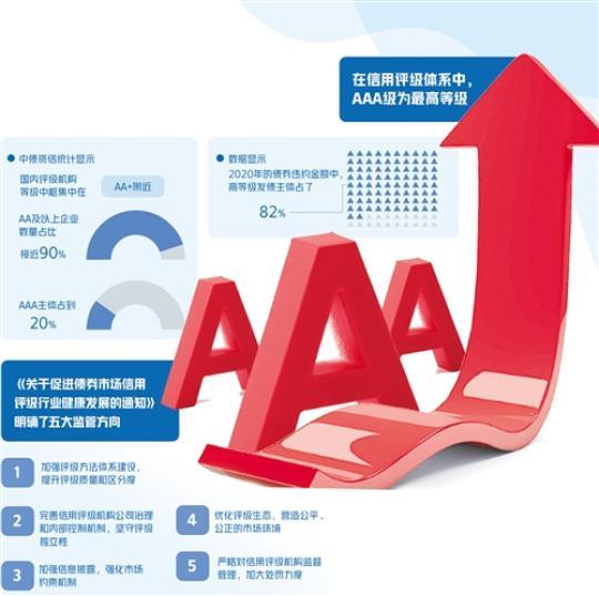 相比之下,美国、日本等发达债券市场AAA级别企业占比不超过5%。从级别调整情况看,近5年国内发债主体信用等级平均上调数量为下调的3.6倍。这些数据均说明,债券评级虚高,作为投资者重要参考的信用评级结果没有起到应有的预警作用。