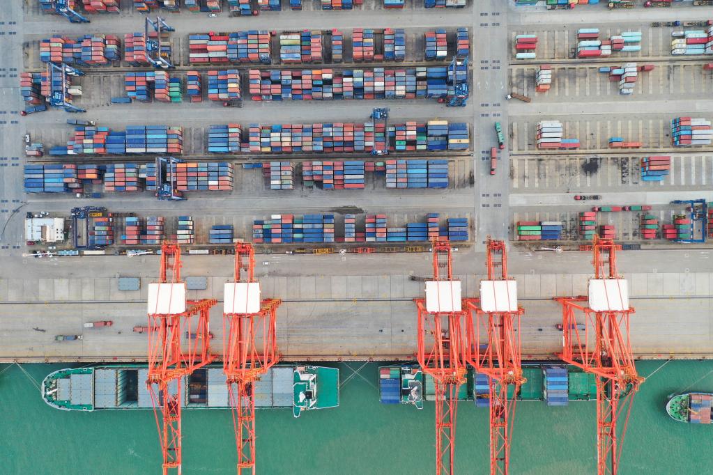 这是江苏连云港港集装箱码头。新华社发(司伟 摄)