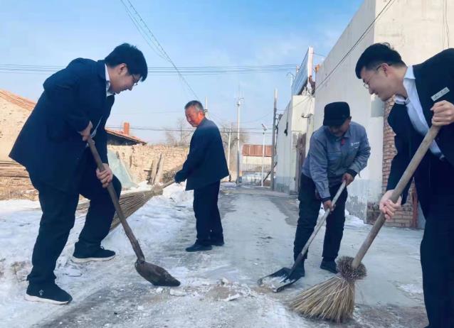 右玉农商银行威远支行的员工们看着村民们在光滑的路面行走不时有人摔倒,甚至有些大爷大妈会摔伤腿,心里别提多着急。临近中午,在为厅堂内的最后一名客户办理完业务后,大家便迅速整理好工作,牺牲了午饭和午休的时间,兵分两路,三人一组,带着清雪铲、铁锹分别深入威远村以及周边村庄,协助各村环卫工人和村民清除积雪。