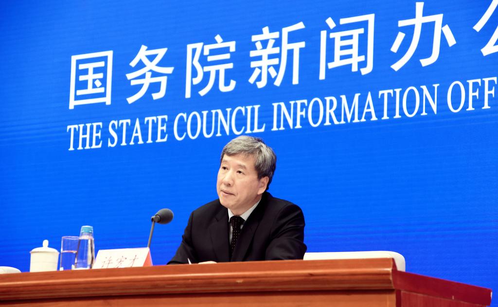 1月25日,财政部副部长许宏才在国新办新闻发布会上介绍2021年财政收支情况。 新华社记者 潘旭 摄