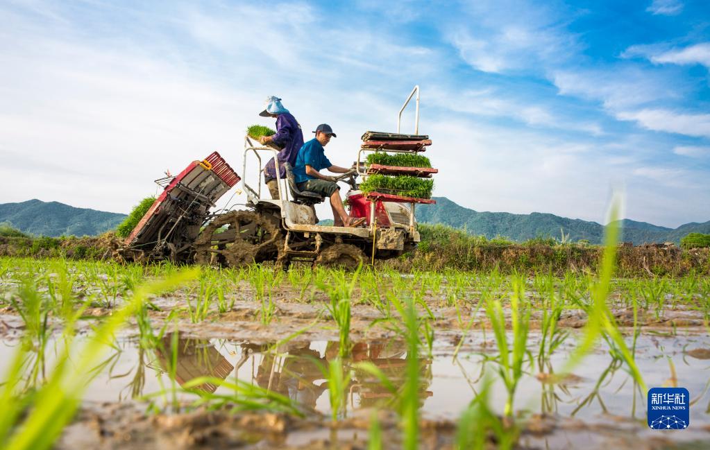 4月12日,江西省九江市都昌县蔡岭镇杨湾村农民驾驶农机在田间劳作。新华社发(傅建斌摄)