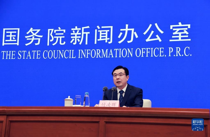 4月18日,国务院新闻办公室在北京举行新闻发布会,请国家统计局新闻发言人、国民经济综合统计司司长付凌晖介绍2022年一季度国民经济运行情况,并答记者问。新华社记者 潘旭 摄