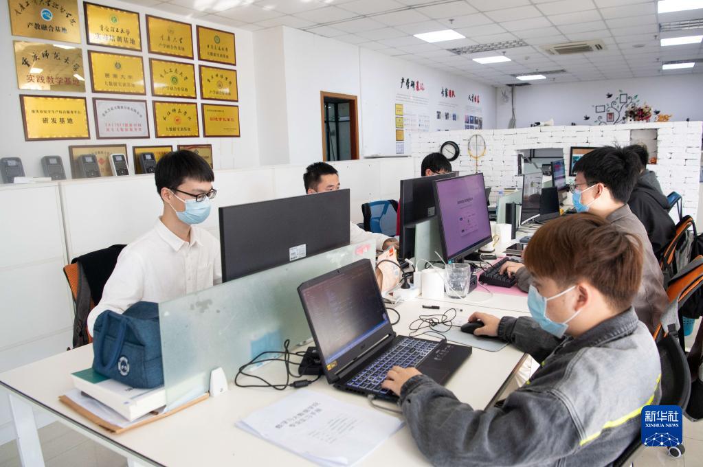 在位于重庆大渡口的“大众创业万众创新示范基地”内,大学毕业生和青年人才在一家名为重庆芝诺的大数据公司内工作(3月28日摄)。新华社记者 唐奕 摄