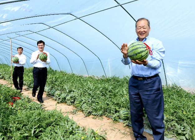 他指出,夏县农耕文明源远流长,自然禀赋得天独厚,是全域生产特优产品的理想之地。近年来,我们夏县围绕强龙头、拓市场、塑品牌,重点打造尊贵的宇达青铜、高贵的格瑞特红酒、金贵的厚民晋茶、名贵的夏乐西瓜,并称“夏都四贵”。特别是今天开园的夏乐西瓜作为“名贵”产品,全县总面积达到3万亩,总产值5.4亿元,群众增产收入3亿元。夏乐西瓜,瓜形美观、皮薄瓤沙、脆甜透香、回味甘长,是人们消夏解暑、迎宾待客的首选上品,也是运城市的十大名片之一。