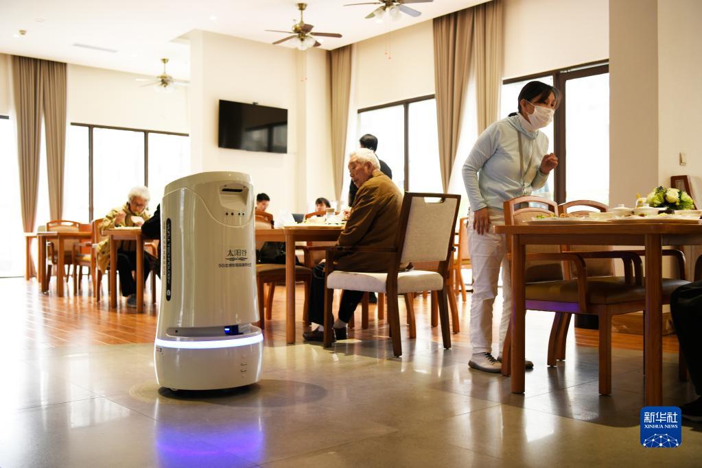 贵州省龙里县中铁国际生态城太阳谷5G全感知智能康养社区内的营养餐配送机器人在运行中(5月23日摄)。新华社记者 刘续 摄