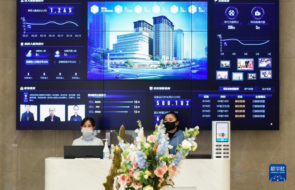 贵州省龙里县中铁国际生态城太阳谷5G全感知智能康养社区内的养老可视化平台在运行中(5月23日摄)。新华社记者 刘续 摄