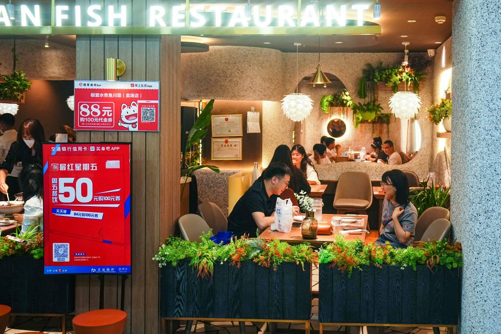 2022年5月28日,市民在长春市一家餐厅内用餐。自这一天零时起,长春市各类生产经营主体全面恢复营业。新华社记者许畅 摄