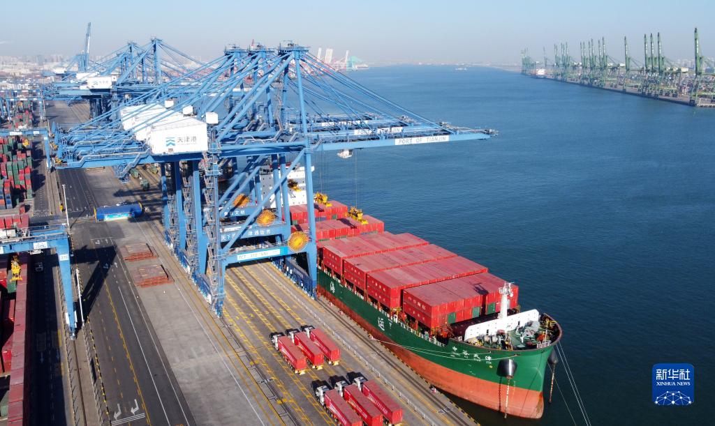 这是经过全流程自动化升级改造的天津港集装箱码头(2021年1月17日摄,无人机照片)。新华社记者 赵子硕 摄