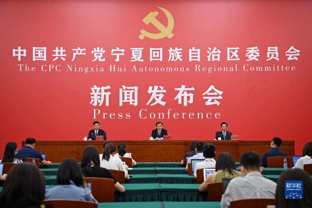 这是7月18日拍摄的“中国这十年·宁夏”主题新闻发布会现场。新华社记者 王鹏 摄