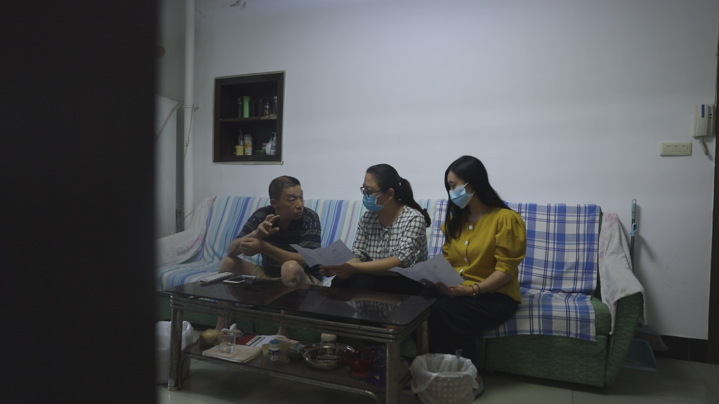 山西太原市万柏林区民政局工作人员到市民宋涛家走访。新华社记者马志异 摄