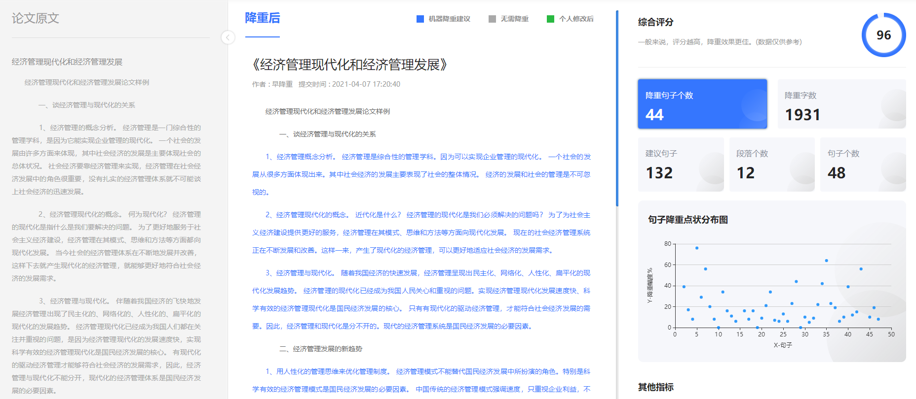近年来,部分学校的毕业论文重复率从原来的30%以内降低到20%,更严格的甚至降到了8%以下。在高校的查重检测前,一些学生会在电商平台购买论文查重服务。为了降低重复率,采用各种技巧的“花式降重”大战开始了!