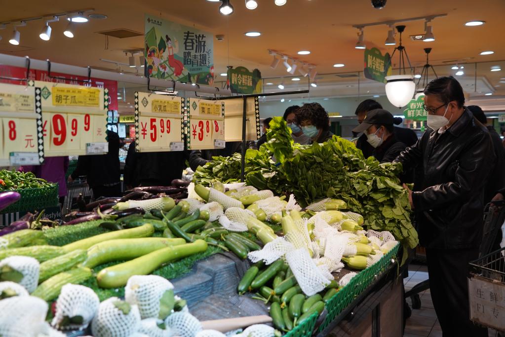 4月15日,市民在青海省西宁市城北区的一家超市里选购蔬菜。新华社记者 耿辉凰 摄