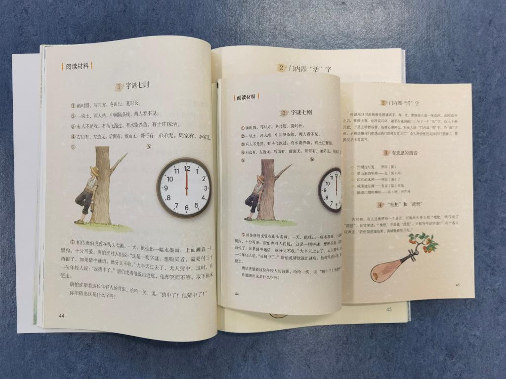 图为普校大字教科书与普校教科书“同页同内容”。新华社记者王君璐摄教材“大一点” 融合教育“深一点”