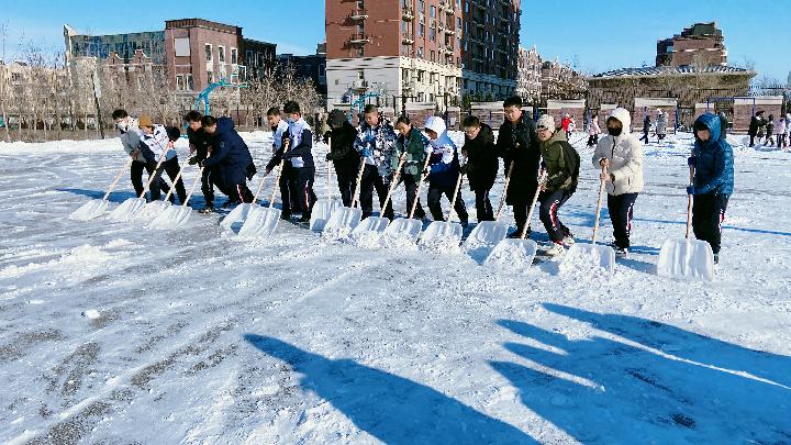 长春新区吉大尚德学校学生参与扫雪劳动。受访对象供图