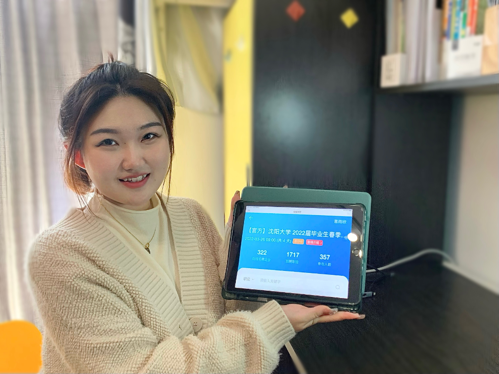 沈阳大学的学生正在参加网络就业双选会求职。(受访者供图)