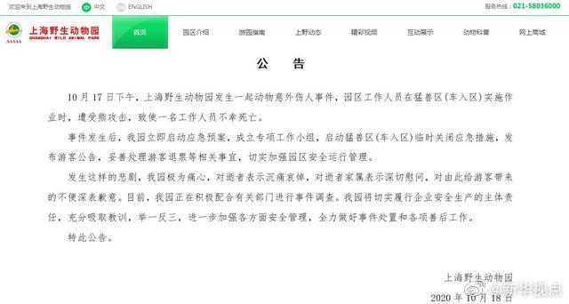 上海野生动物园18日针对17日发生的动物意外伤人事件发布公告。