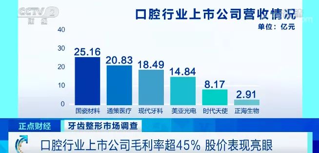 虽然面对记者的采访,大部分口腔医疗从业人员都不愿意回答财务数据方面的内容,但从上市公司公开的数据来看,行业平均毛利率已超过45%。