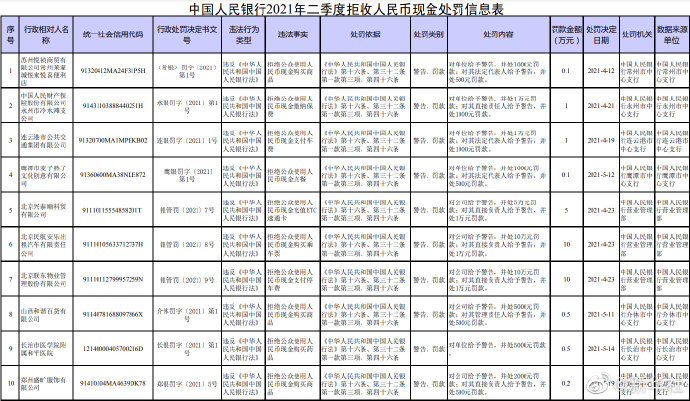 中国人民银行22日对外公布,二季度依法对18家拒收现金的单位及相关责任人作出经济处罚,处罚金额从1000元至10万元人民币不等,被处罚的单位包括公共服务机构、医院、景区、停车场及保险公司等。据介绍,为持续推进整治拒收人民币现金工作,人民银行对核实为拒收人民币现金的,将依法处罚并定期予以曝光。社会公众遇到拒收现金行为,可依法维权。广大经营主体应强化法治观念、维护人民币法定地位,诚信经营、尊重公众支付选择权。(记者吴雨)