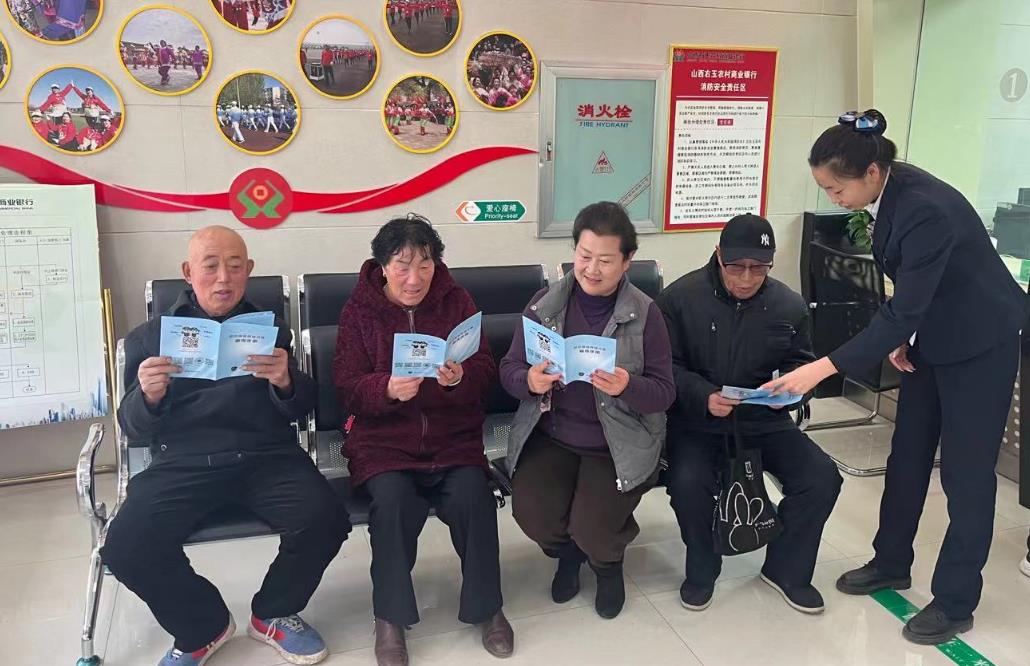 针对老年人易成为电信诈骗、假币调包等违法活动受害者的情况,我行以老年群体为重点,围绕防范电信诈骗、防范非法集资、假币识别、老年人金融消费、智能化应用等内容,定期深入敬老院、社区、广场、村镇开展金融知识宣传。同时积极拓宽化宣传渠道,依托微信公众号、电子屏等载体开辟老年人金融服务宣传栏目,让老年人更放心的享受我行的金融服务。