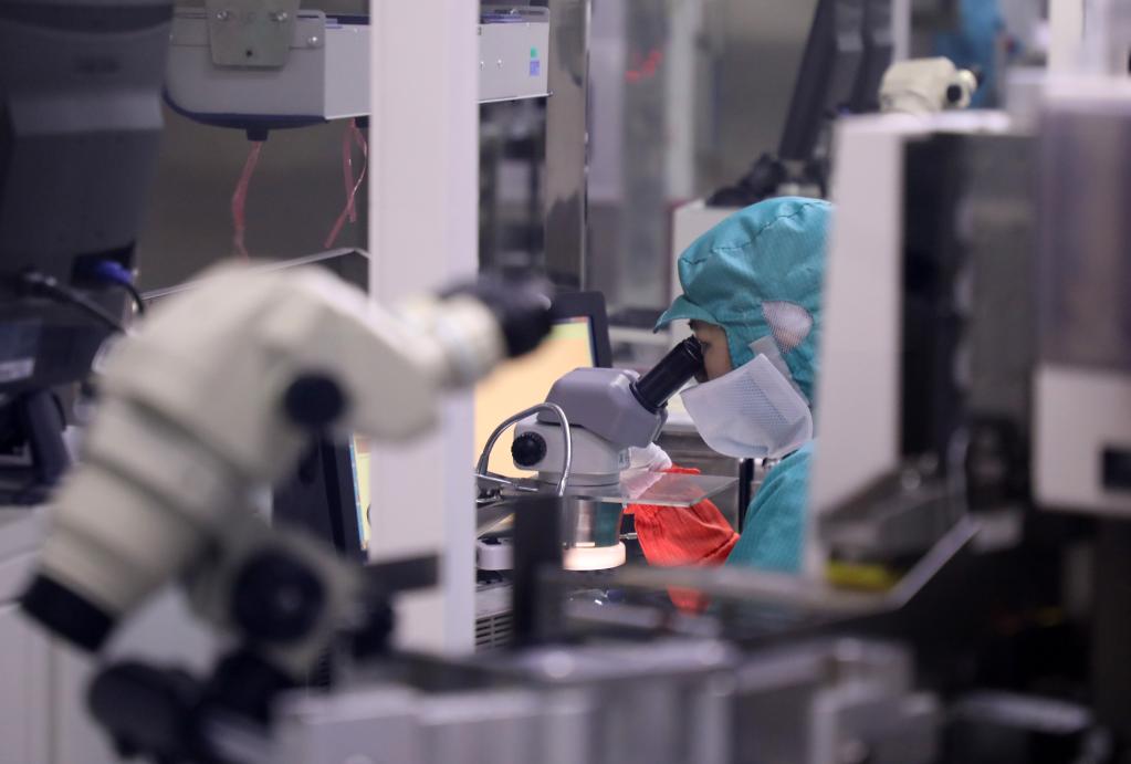联测优特半导体(东莞)有限公司员工正在检测半导体产品(2022年4月27日摄)。新华社记者 黄国保 摄