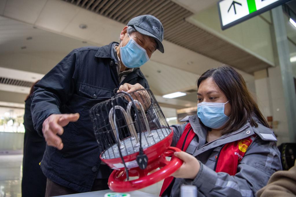2022年3月5日,来自重庆轨道集团的志愿者在重庆轨道交通2号线新山村站站厅对市民送来维修的家用电器进行登记。新华社记者 唐奕 摄