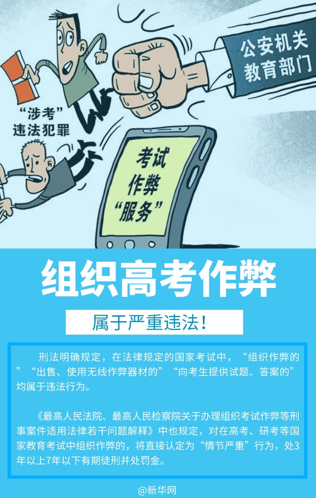 2022年高考即将到来,有些不良机构或不法分子妄图借高考之机牟取不法利益。近年来,各地公安机关会同教育部门,对各类涉考违法犯罪活动持续保持高压严打态势,本期法治课代表提醒广大考生和家长要增强法律意识,诚信考试,切勿心存侥幸。