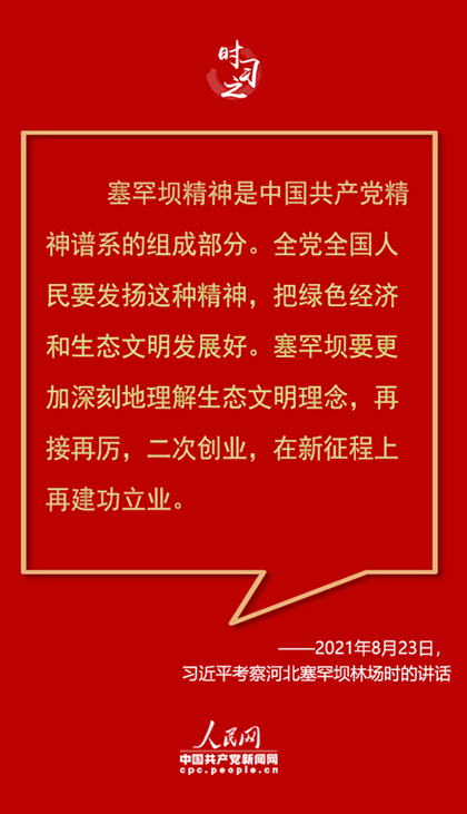 现在的塞罕坝已经走上了绿色高质量发展道路,条件不再那么艰苦,但自强不息、百折不挠的坚强意志,甘于吃苦、乐于奉献的工作态度已融入塞罕坝人的血脉,成为一代又一代人的不懈追求。