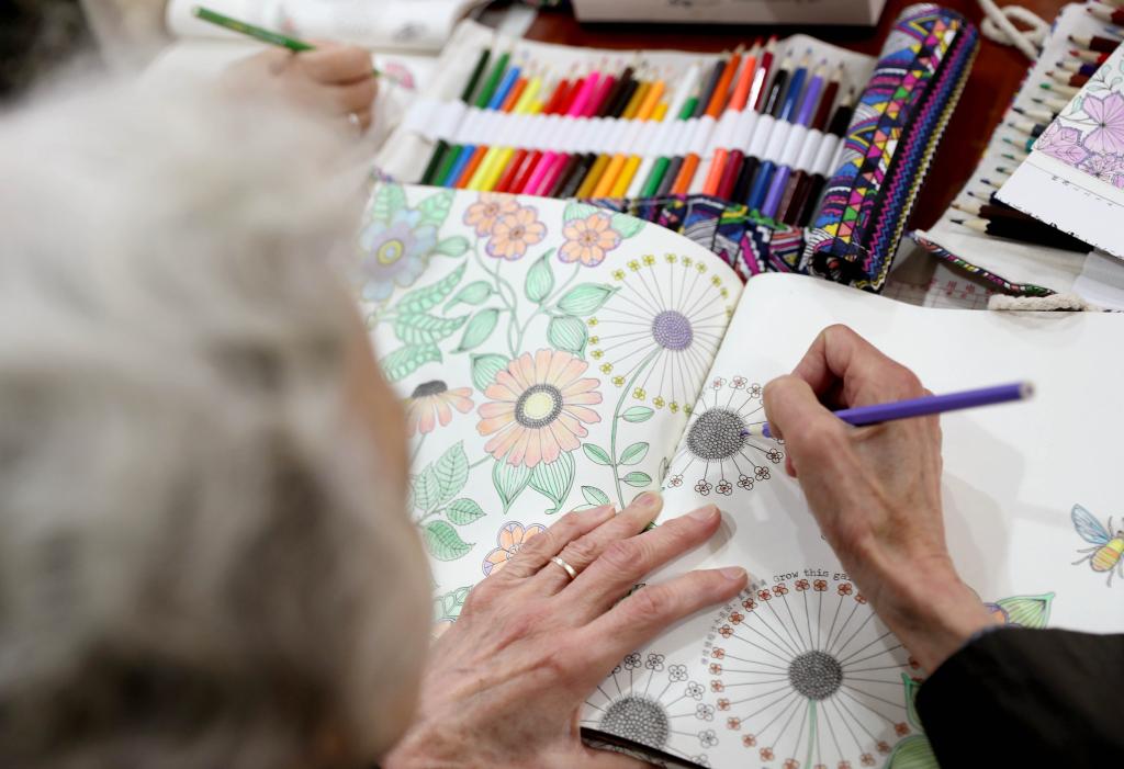 2020年11月,在上海市静安区江宁路街道爱老家园,一位老年人在通过图画填色进行康复训练(新华社记者刘颖 摄)