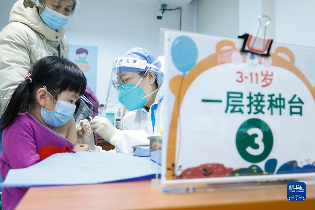 家长带着孩子在北京新街口街道新冠疫苗接种点接种疫苗(12月9日摄)。新华社记者 张玉薇 摄