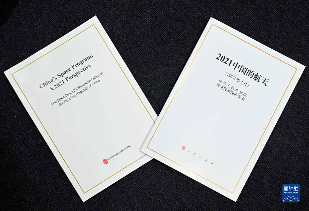 这是1月28日拍摄的《2021中国的航天》白皮书。当日,国务院新闻办公室发布《2021中国的航天》白皮书,并在北京举行新闻发布会。 新华社记者 金良快 摄