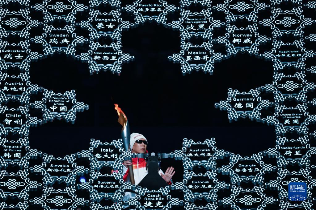 3月4日,北京冬残奥会开幕式,视障运动员李端摸索了一分钟后,终于在全场观众的加油声中将主火炬稳稳插入了卡槽,国家体育场“鸟巢”中的“大雪花”再次被点亮。
