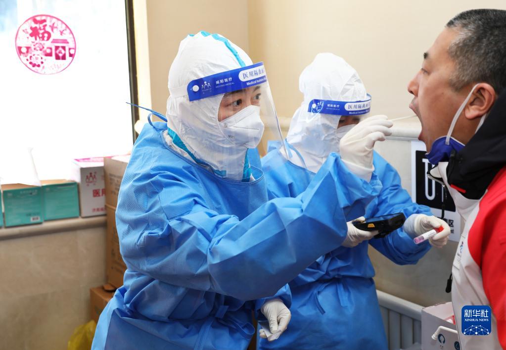 图为医务工作者在北京2022年冬奥会张家口赛区云顶场馆群住宿区开展核酸检测工作(2022年2月1日摄)。新华社发(武殿森 摄)
