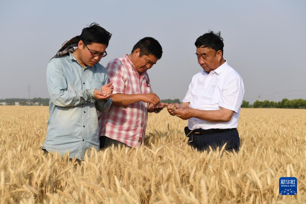 徐淙祥在安徽太和县淙祥现代农业种植专业合作社察看小麦样品(2022年6月28日摄)。新华社记者 周牧 摄