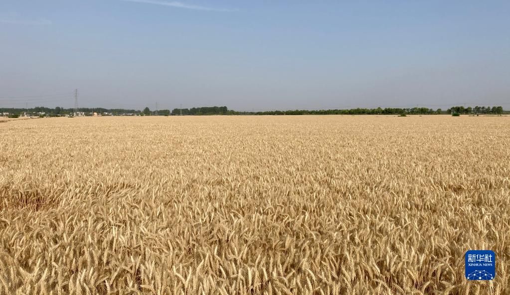 这是在安徽太和县淙祥现代农业种植专业合作社拍摄的麦田丰收景象(2022年6月2日摄)。新华社发(徐旭东 摄)