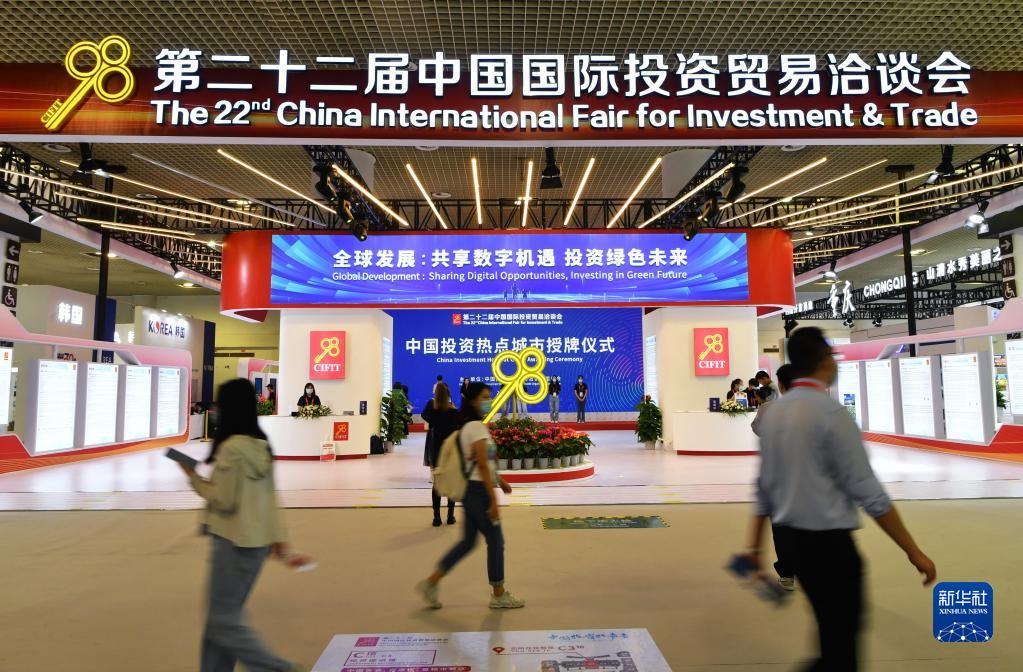 2022年9月8日拍摄的第二十二届投洽会展馆现场。当日,以“全球发展:共享数字机遇、投资绿色未来”为主题的第二十二届中国国际投资贸易洽谈会(简称“投洽会”)在福建厦门开幕。新华社记者 魏培全 摄