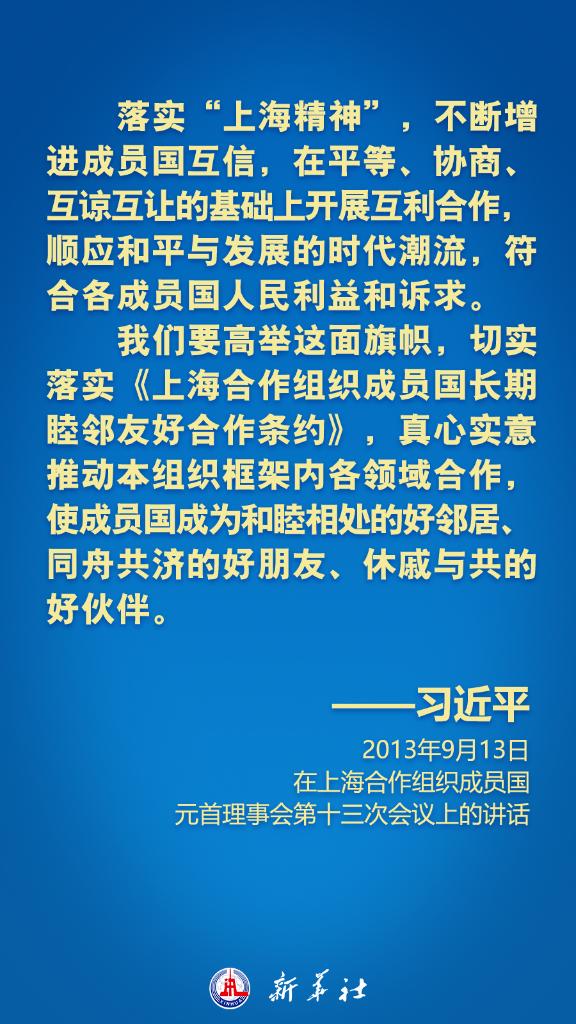 2013年以来,习近平主席出席了上合组织历次峰会并发表重要讲话,就深化上合合作提出中国主张,坚定倡导“上海精神”,为打造更加紧密的上合组织命运共同体注入强劲动力。