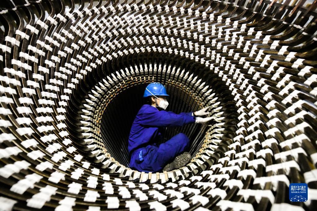 在哈电集团哈尔滨电机厂有限责任公司的生产车间,工人在进行生产作业(2022年9月3日摄)。新华社记者 王松 摄