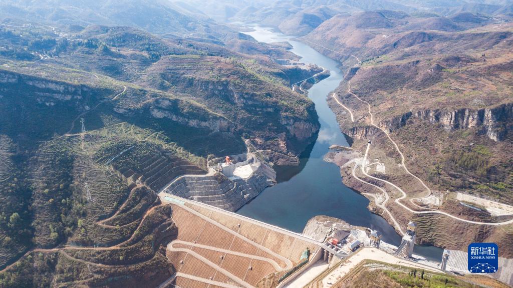 这是在位于乌蒙山区的贵州省纳雍县六冲河畔拍摄的夹岩水利枢纽工程(2022年3月17日摄,无人机照片)。新华社记者 陶亮 摄